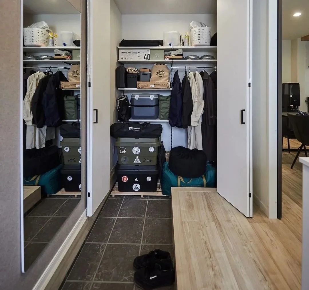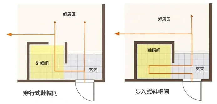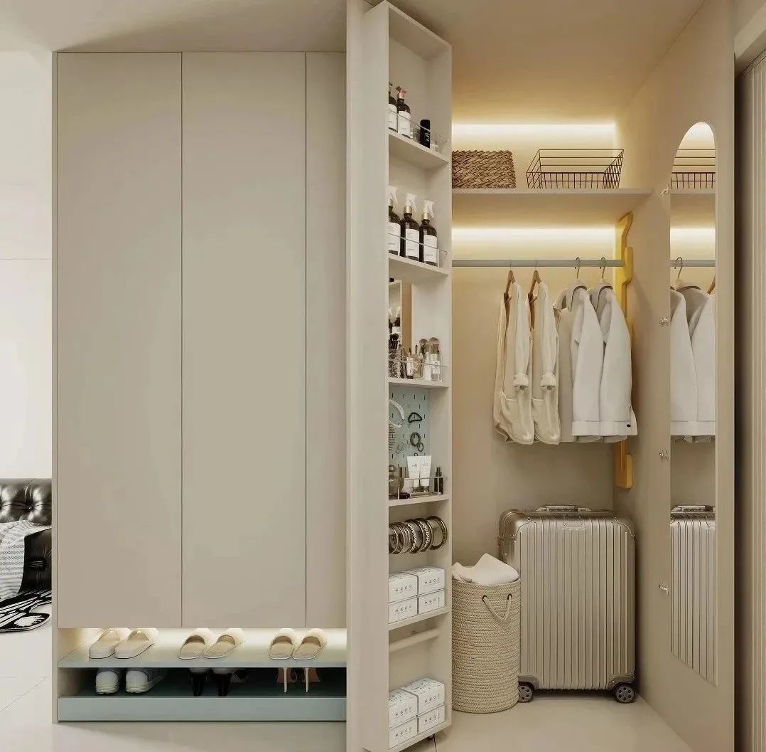 这两种衣帽间的布局,都更加有助于入户整洁,而且也方便日常使用,设计上也可以花更多的心思。