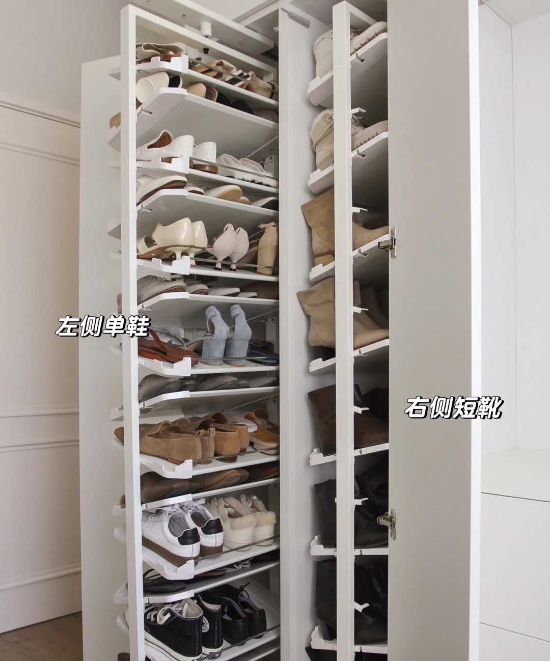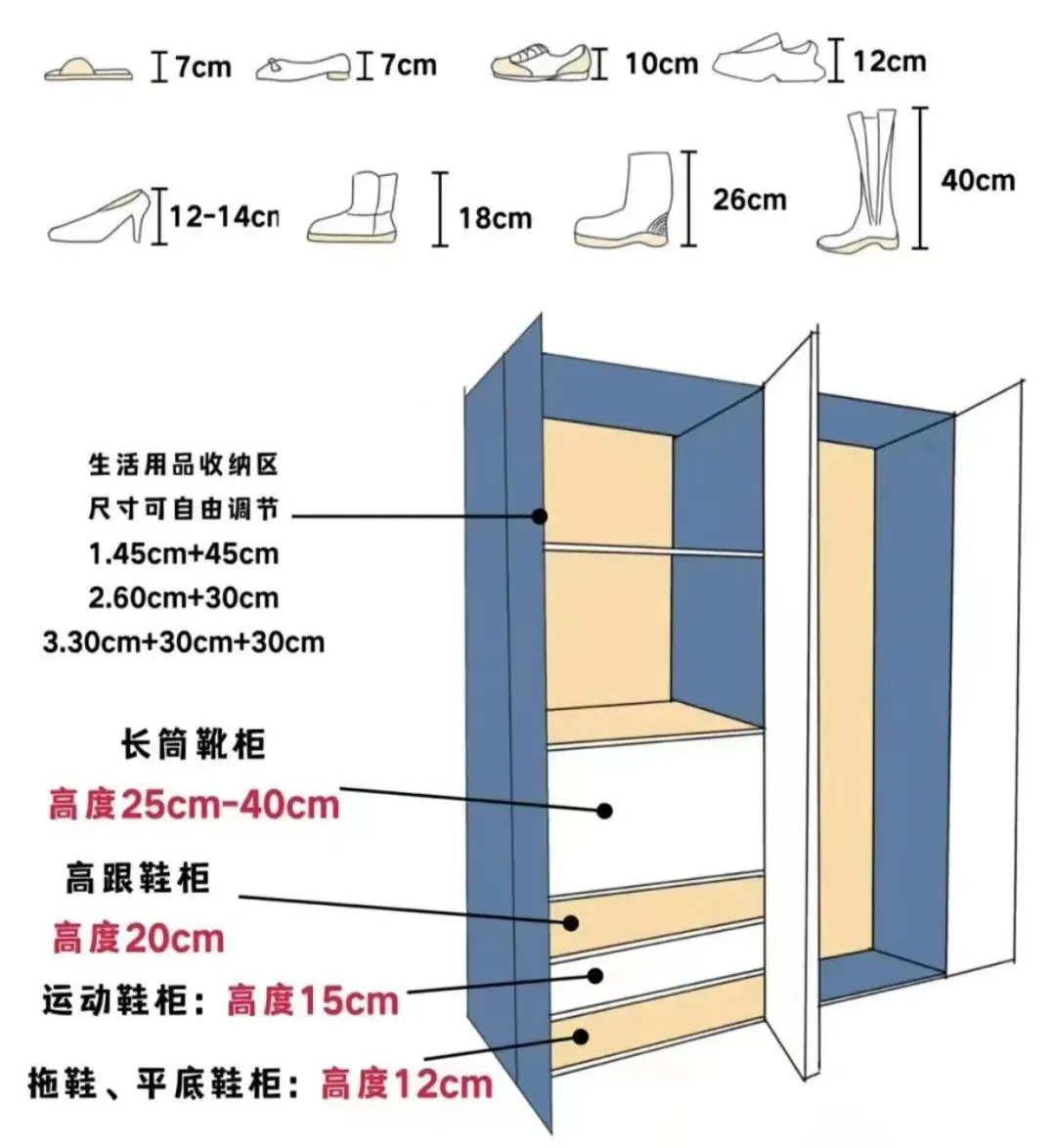 ②可根据鞋子高度来规划内部层板高度,直接选择移动层板代替固定层板,方便根据鞋子灵活调整高度以及打扫;