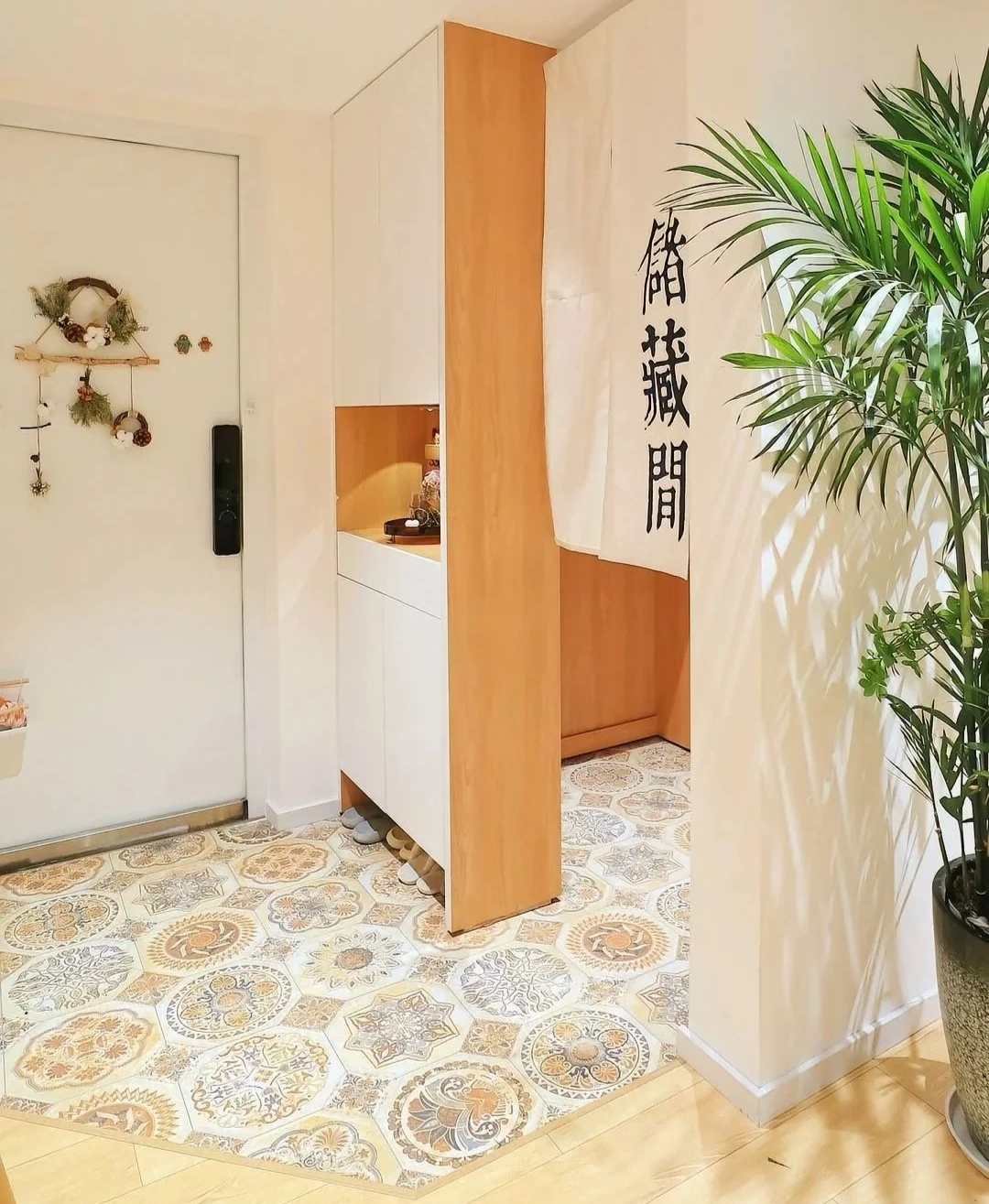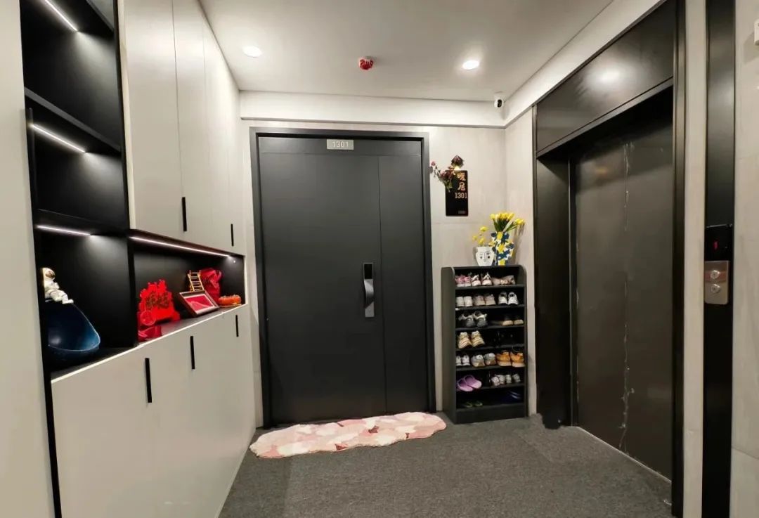 尤其是那种一梯一户、室内没有预留玄关位的户型,别提多憋屈了。但其实,这种户型反而藏着一张“王炸”——因为是一梯一户,门外就是自家独享的入户过道,可完全做成一个“室外玄关”!