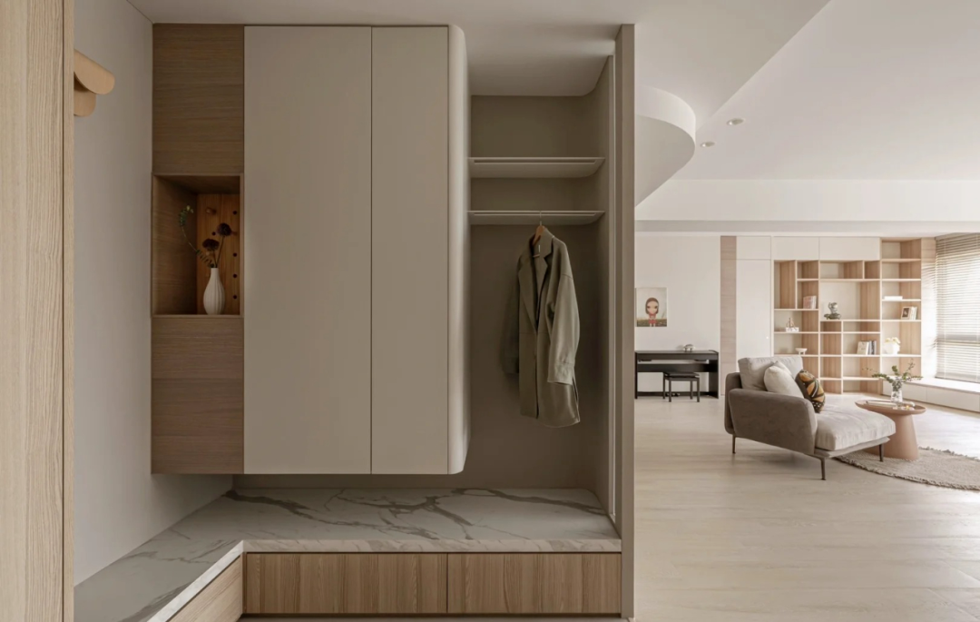 很多人买房时没注意玄关,等到入住才发现——门一打开,外套、包包、快递鞋子全都堆门口。